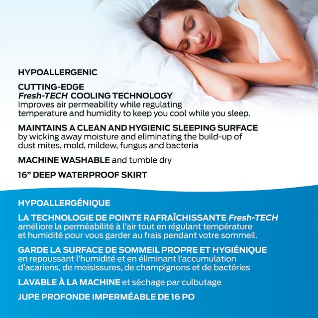 • Fresh -Tech advanced technology improves air permeability while regulating temperature and humidity to keep you cool during sleep.