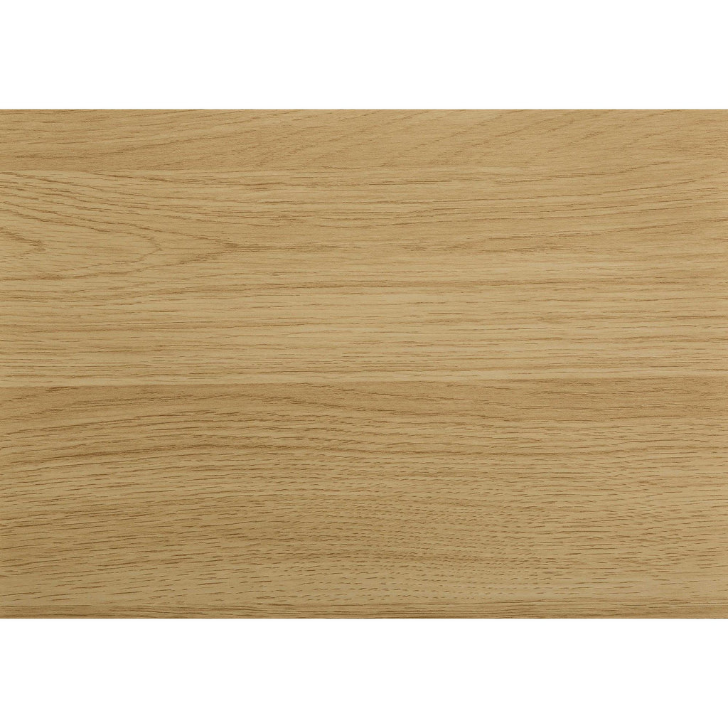 - L-shaped computer desk with a large desktop in a natural wood-look finish.