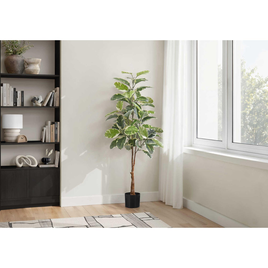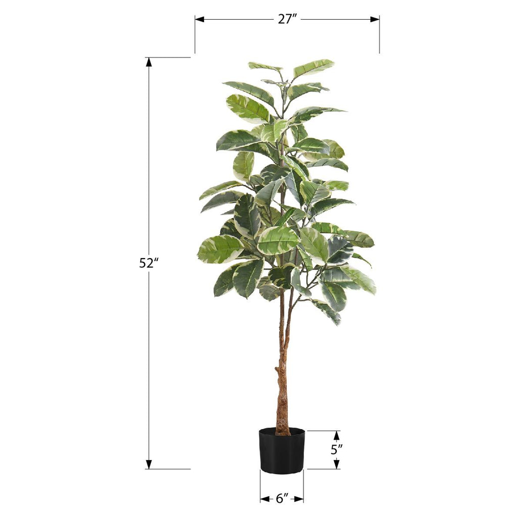 Add a touch of greenery to your home or office with this 52-inch tall indoor rubber artificial tree in a 5-inch tall black pot.