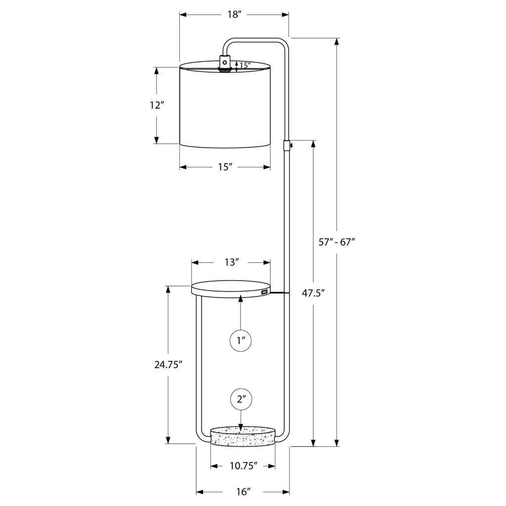 Bring decorative style and function to your space with this contemporary 67-inch tall floor lamp featuring an adjustable arm, a sleek black metal frame with a textured black polyresin base, and a modern ivory linen drum shade.