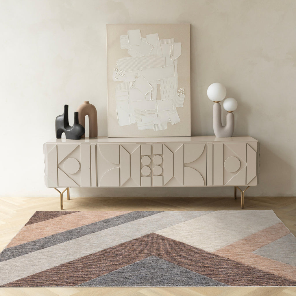 This rug is made of polyester, a stain-resistant material that gives dimension and durability to its designs.