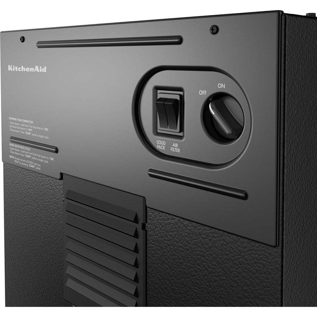 To minimize unpleasant odors, this compactor features the combination of a fan and charcoal filter to help trap odors.