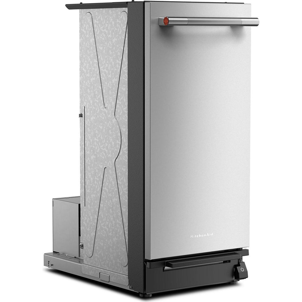 To minimize unpleasant odors, this compactor features the combination of a fan and charcoal filter to help trap odors.