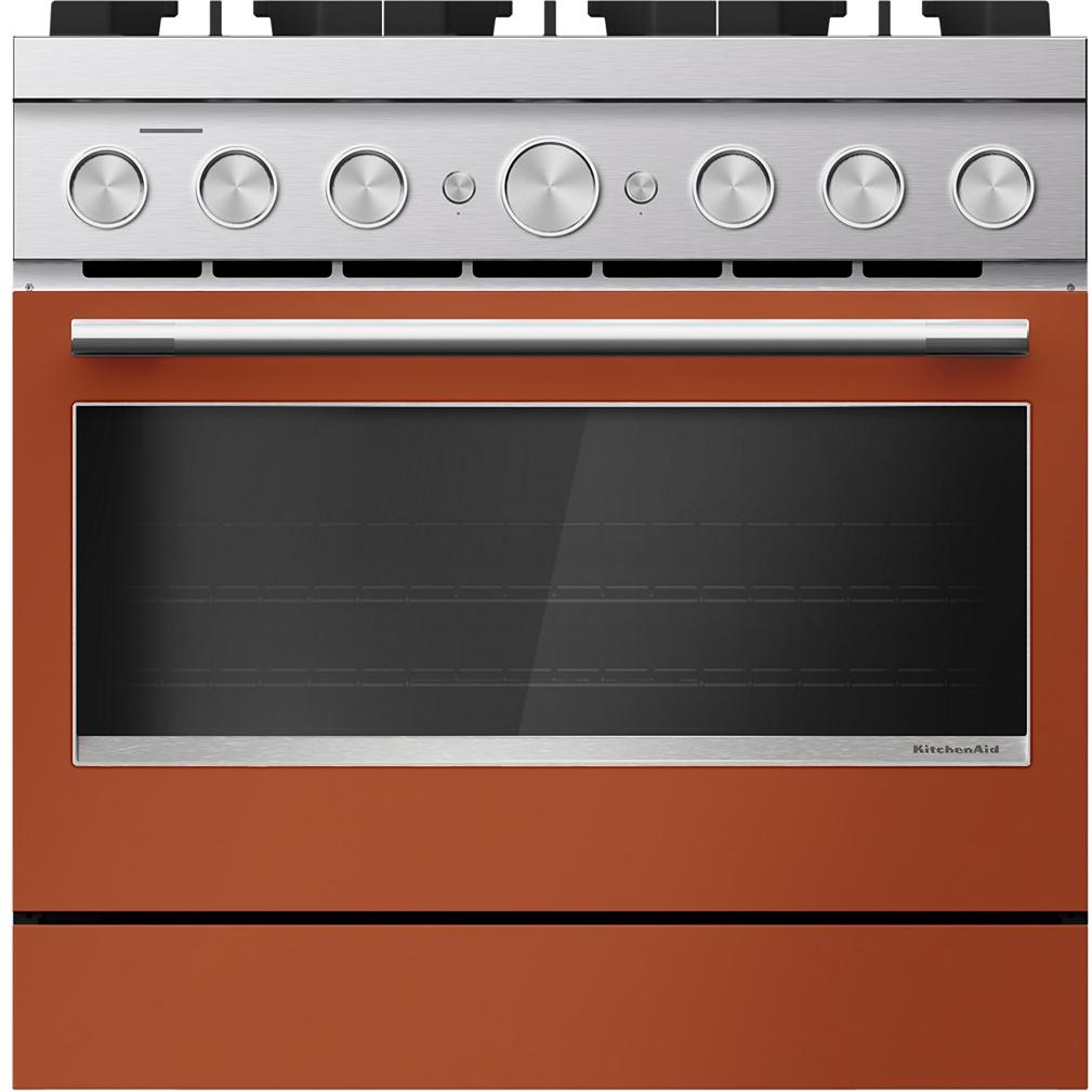 KitchenAid Commercial-Style 36-inch dual-fuel range with 6 burners.
