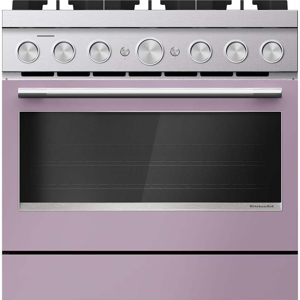 KitchenAid Commercial-Style 36-inch dual-fuel range with 6 burners.