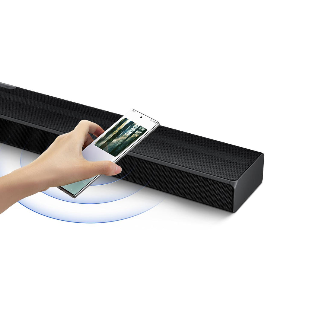 The Soundbar syncs with your Samsung TV, together creating immersive sound. Your TV speakers and Soundbar work together in harmony for a more immersive sound experience.