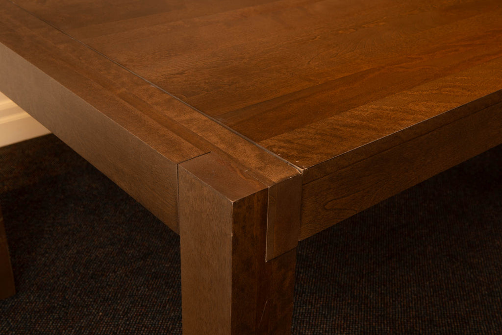 table de salle à manger en merisier 72'' x 40'' x 30''H  couleur: dessus mocha / pattes mocha 1 stock... table de salle à manger en merisier 72'' x 40'' x 30''H  couleur: dessus mocha / pattes mocha 1 stock dessus coin abimé et égratignure sur pattes View more