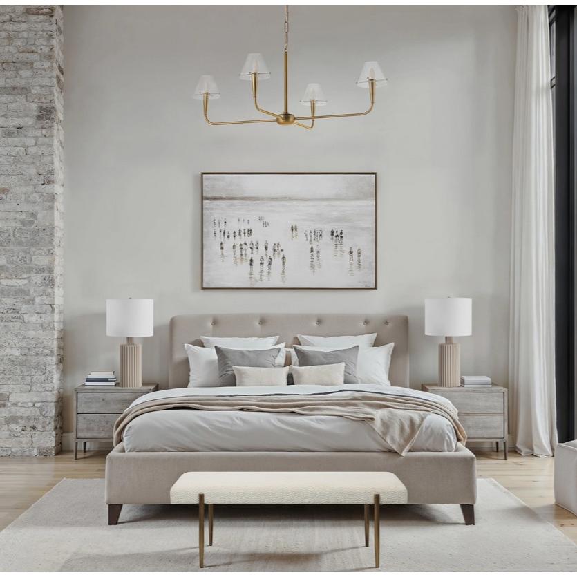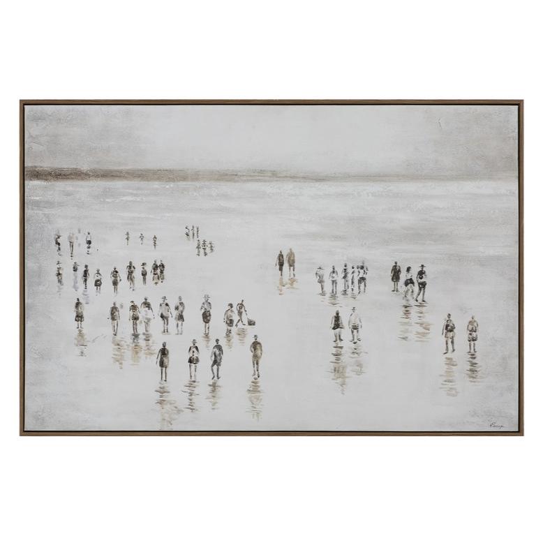 Peinte à la main - Toile en coton - Texturée - Cadre en placage de chêne -Accrochage horizontal.