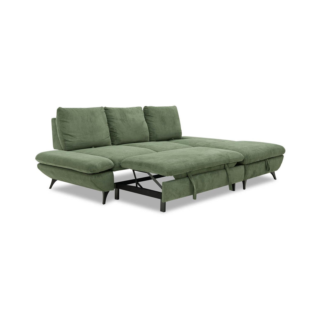 Le canapé-lit gigogne transforme rapidement le canapé sectionnel en lit d'invité. • Chaise élévatrice orientée vers la droite pour révéler un compartiment de rangement caché. • Les coussins en mousse profonde offrent un soutien pour la détente quotidienne. • Le revêtement en tissu doux et durable résiste à une utilisation quotidienne. • Ouverture simple par 1 seule personne. • Bras réglable pour plus d'espace pour le lit et plus de confort pour le sofa.