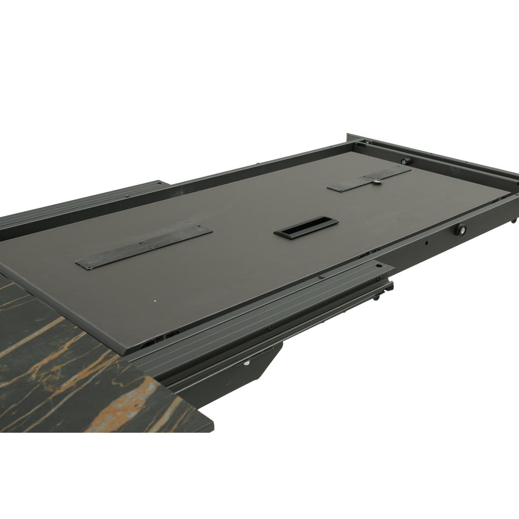 Rallonge invisible avec système papillon, facile à ouvrir par une seule personne. - Fabriqué en Italie. - Base de métal fini texturé pour réduire les égratignures. - Peut accueillir jusqu'à 10 personnes. - Longueur avec extension: 111".