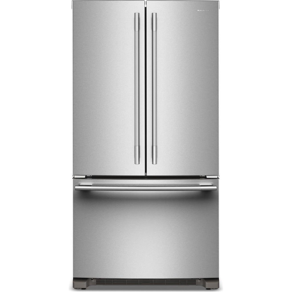 KitchenAid Réfrigérateur trois portes avec porte à deux battants à profondeur de comptoir de 36 pouces, 20 pi. cu. avec distributeur d'eau KRFC136SPS