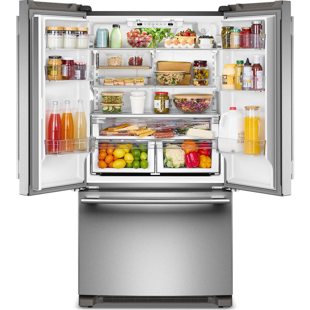 Profitez d’une fraîcheur toujours à portée de main. Ce réfrigérateur à portes françaises KitchenAid® de profondeur comptoir est doté d’un... Profitez d’une fraîcheur toujours à portée de main. Ce réfrigérateur à portes françaises KitchenAid® de profondeur comptoir est doté d’un distributeur d’eau intérieur pour conserver un extérieur épuré. Bénéficiez d’un rangement personnalisable grâce à une tablette ajustable à l’apparence bois et d’un tiroir garde-manger pleine largeur offrant un espace pratique pour les articles plus larges. De plus, sa conception à profondeur comptoir permet au réfrigérateur de s’aligner presque à fleur avec les armoires environnantes, créant un style intégré et offrant plus d’espace pour circuler dans votre cuisine. Voir plus