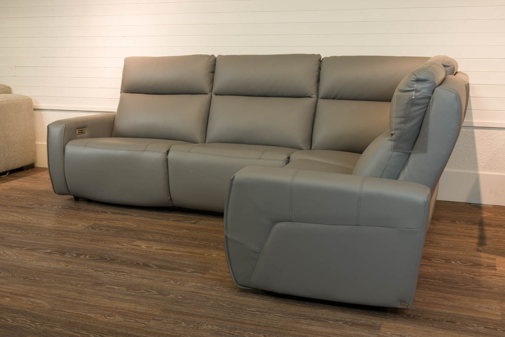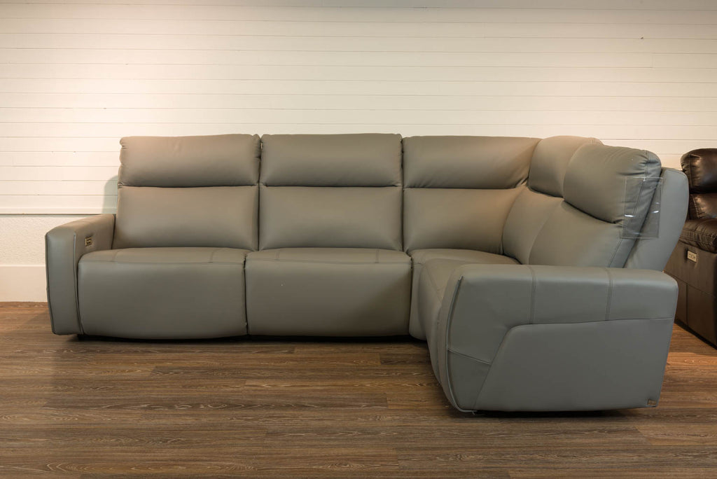 Sectionnel en cuir et vinyle de couleur gris inclinable (2) Dimension 109'' x 80'' x 41''H Marque: Elran