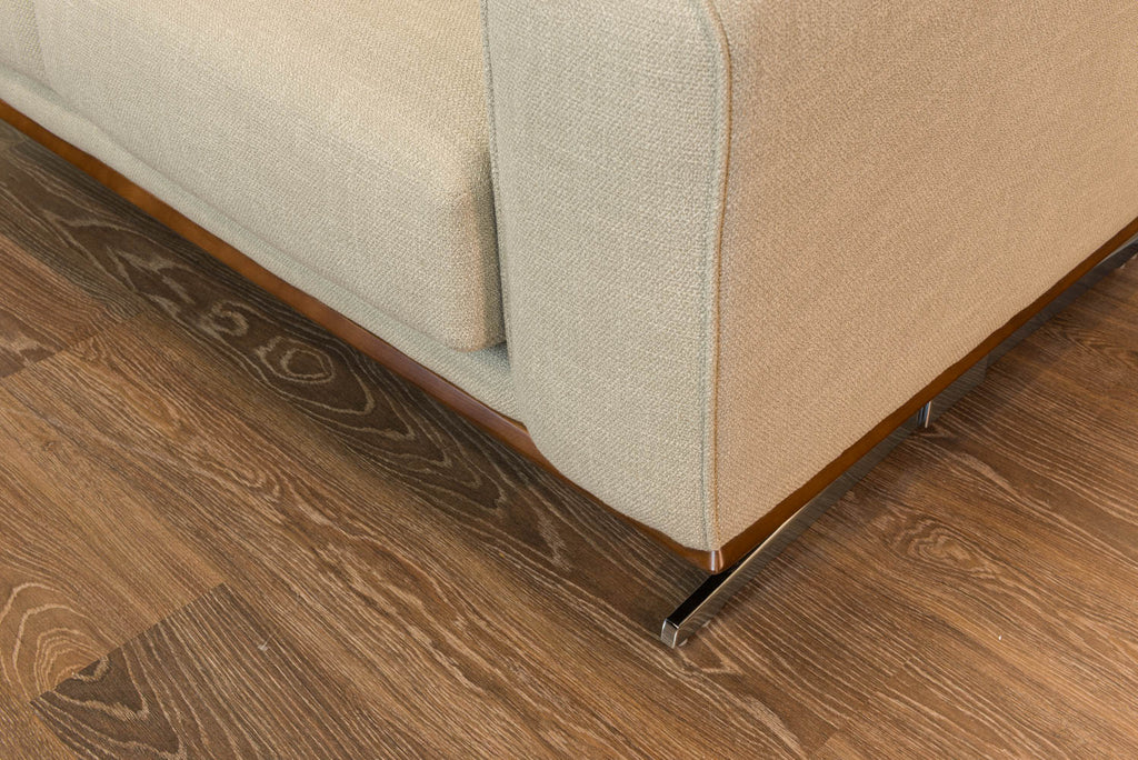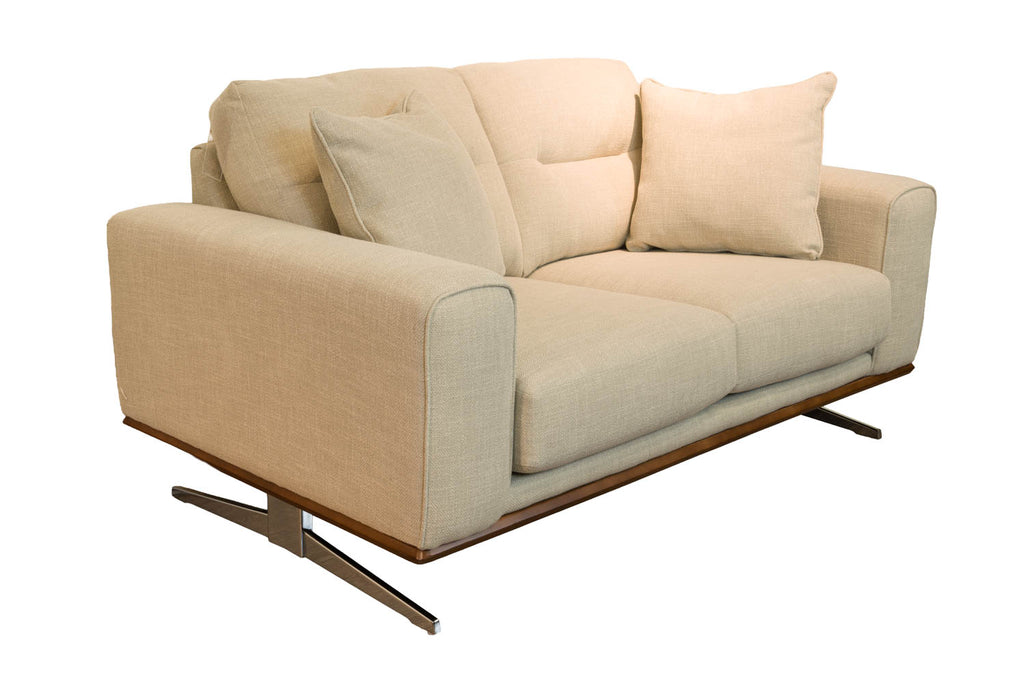 Causeuse  : 63'' x 38'' x 35''H marque Decor-Rest tissu beige / pattes stainless