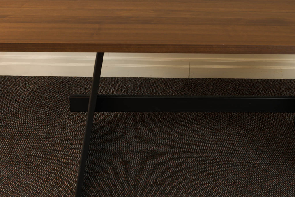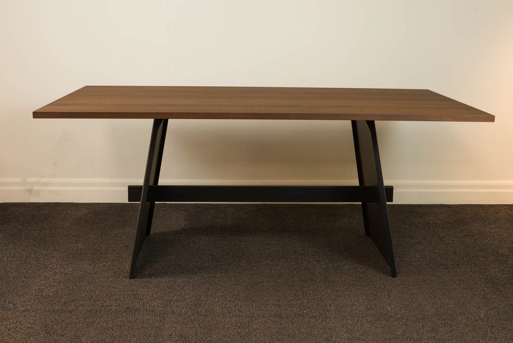 Table de salle à manger avec dessus en placage de noyer et base en métal noir. Dimensions: 72'' x 40''... Table de salle à manger avec dessus en placage de noyer et base en métal noir. Dimensions: 72'' x 40'' x 30''H Fabriqué au Canada. *Quelques grafignes sur le dessus de la table. Voir plus
